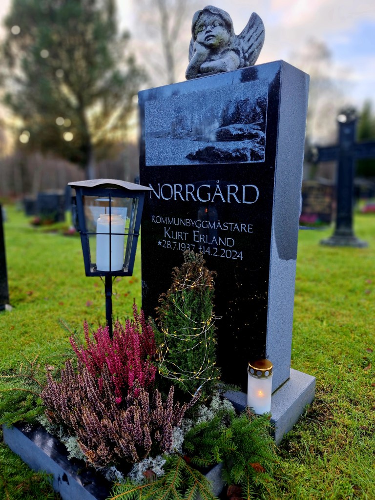 Fatta pappa att det är dags för allhelgona igen, redan andra gången utan dig – vart far tiden egentligen? Ifjol tändes ljus för dig framme i kyrkan men i år fick du nöja dig med ljus i lyktan på din lilla kolonilott och med en matchande ljusslinga i din nya fina prydnads-en (mamma ville ha det och vi tänker att det är ganska fint så här i novent) kolla bara:
